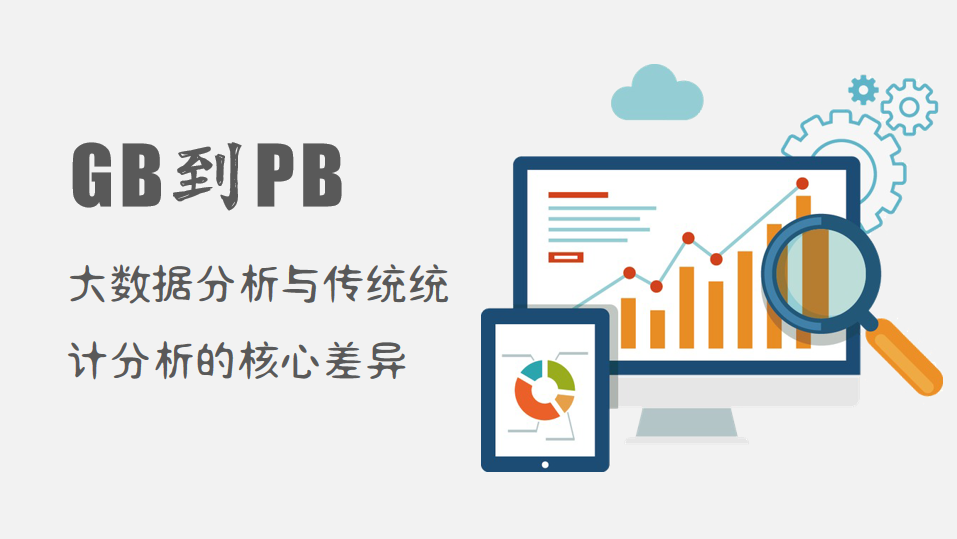 传统统计分析处理的数据量在 MB 或 GB 级别,范围有限但易于管理。大数据分析则要面对 TB 甚至 PB 级数据。